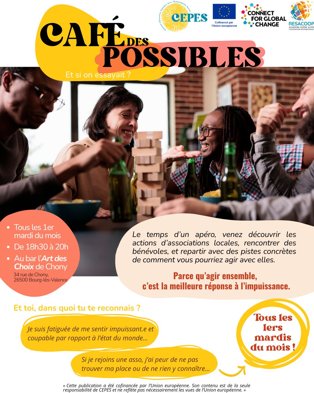 [Nouveau] Des ateliers-rencontres avec des associations engagées du territoire, tous les 1ers mardis du mois au café association l’Art des Choix de Chony, à Bourg-lès-Valence, de 18h30 à 20h.
